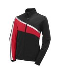 • Contrast color asymmetrical insert that wraps from wearer's right arm around back of the body
