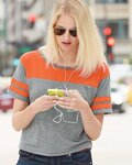 USA-Made Juniors' Triblend Striped Cropped Tee